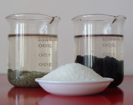 在工業(yè)廢水處理方面聚丙烯酰胺產(chǎn)品主要做為助凝劑或絮凝劑使用,由于其分子鏈中含有一定量極性基因能吸附水中懸浮的固體粒子,使粒子間架橋形成大的絮凝物。 它能夠加速懸浮液中的粒子的沉降,有非常明顯的加快溶液的澄清,促進過濾等效果,廣泛用于化學工業(yè)廢水、廢液的處理。一般污水前段處理(氣浮或沉淀)用無機絮凝劑(PAC)和有機高分子絮凝劑(PAM)配合使用,而在后段處理是污泥脫水,用有機高分子絮凝劑(陽離子聚丙烯酰胺)做污泥脫水藥劑使用,個別污水的污泥脫水也有選擇陰離子聚丙烯酰胺,這個要根據(jù)各廠實際情況做進一步的確定。